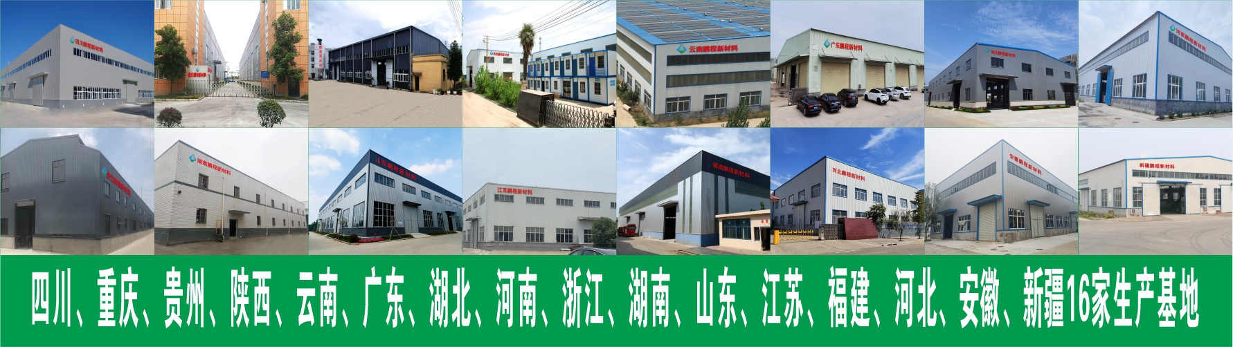 四川、廣東、湖北、重慶、河南、貴州、陜西、云南、浙江、湖南、山東、江蘇、福建、河北、新疆、安徽十六家工廠
